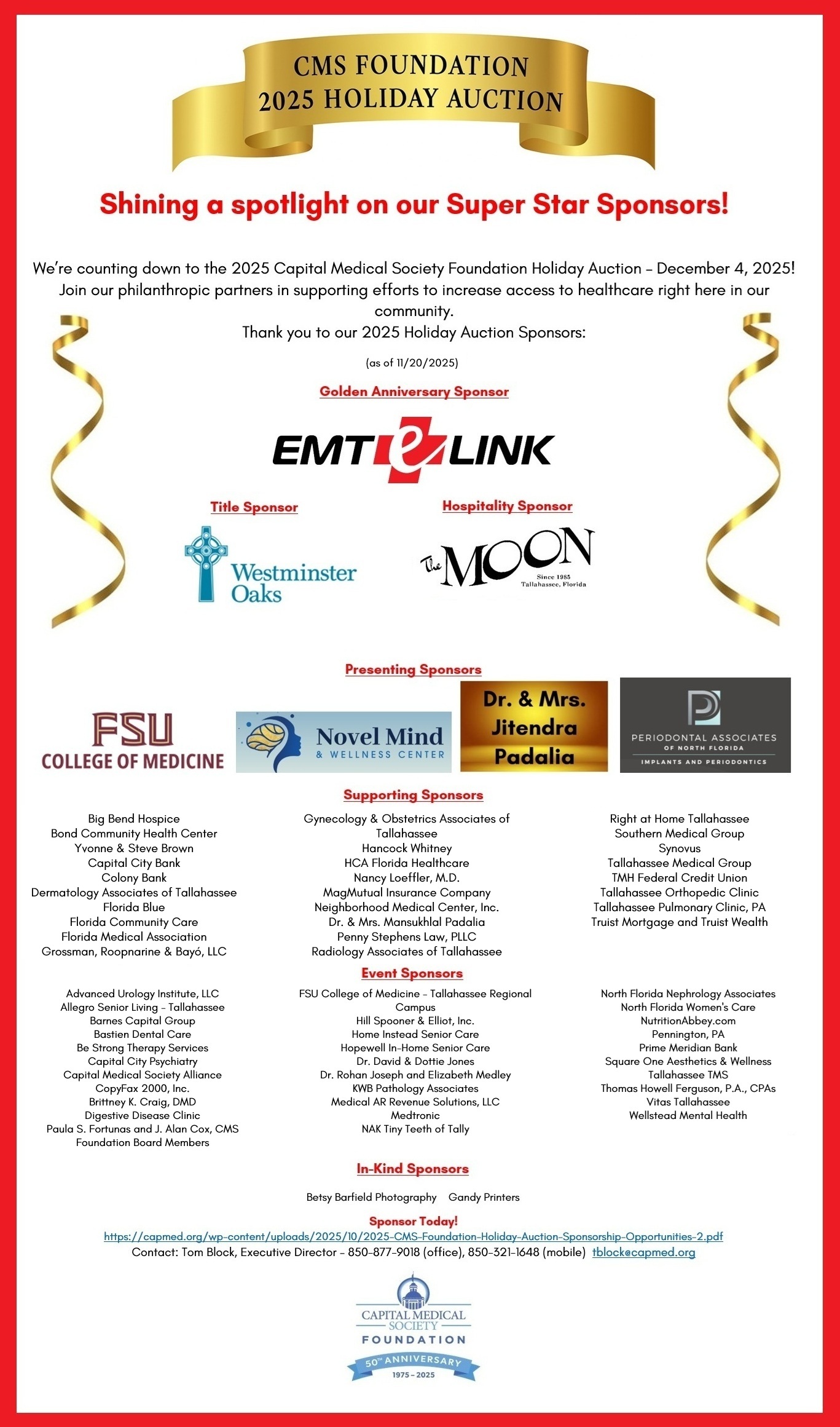 THANK YOU TO OUR CMS FOUNDATION 2025 HOLIDAY AUCTION SPONSORS! Posted on November 21, 2025November 21, 2025 by capmedteam